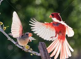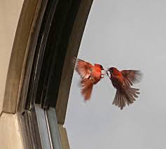 A red bird flew right into the window.
