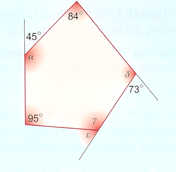 Izračunaj manjkajoče kote 5-kotnika. Zapiši postopek ali pripni sliko postopka iz zvezka. (T)