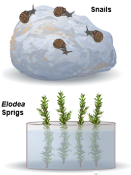 Observe: Put one sprig of Elodea and one snail in a test tube with the lights on. Click Play.