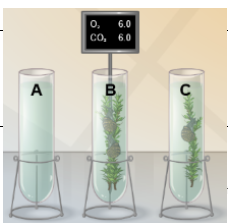 What is always true about the total amount of O2 and CO2 in the test tube?