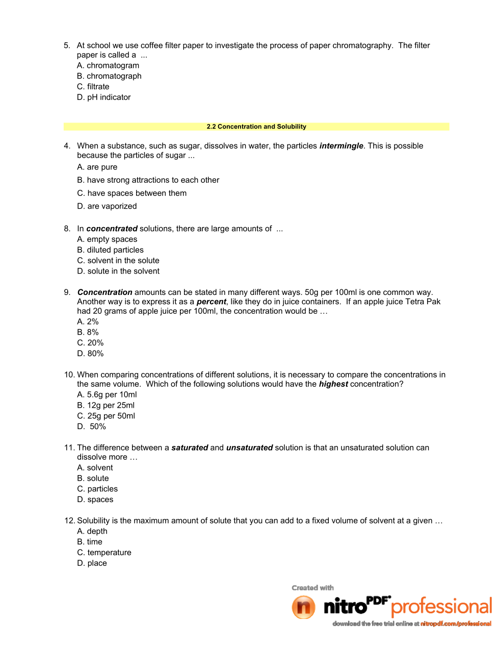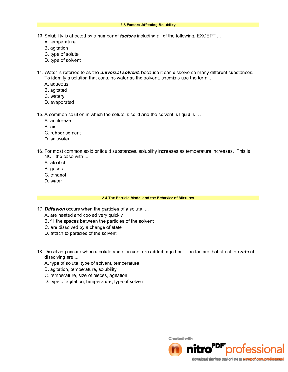 Sci. 8- Mix & Flow of Matter: Section 2 Quiz