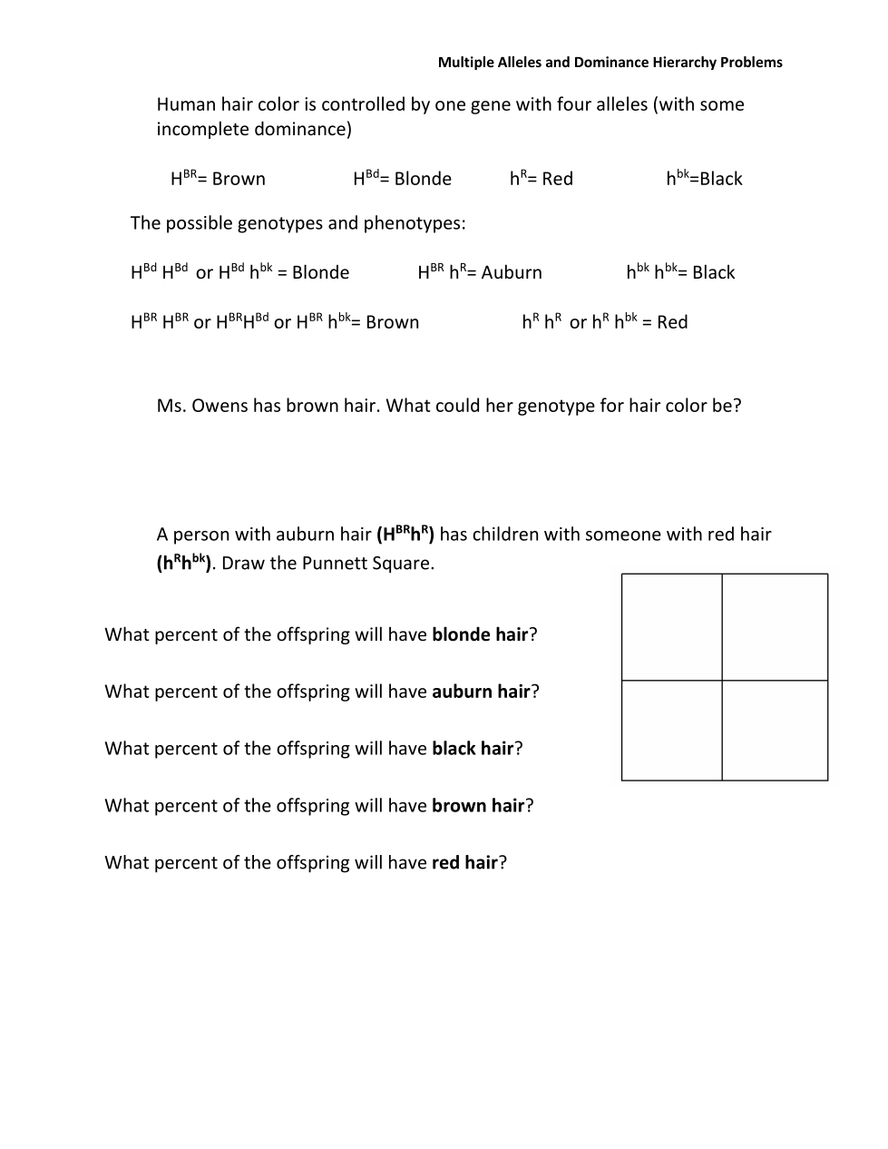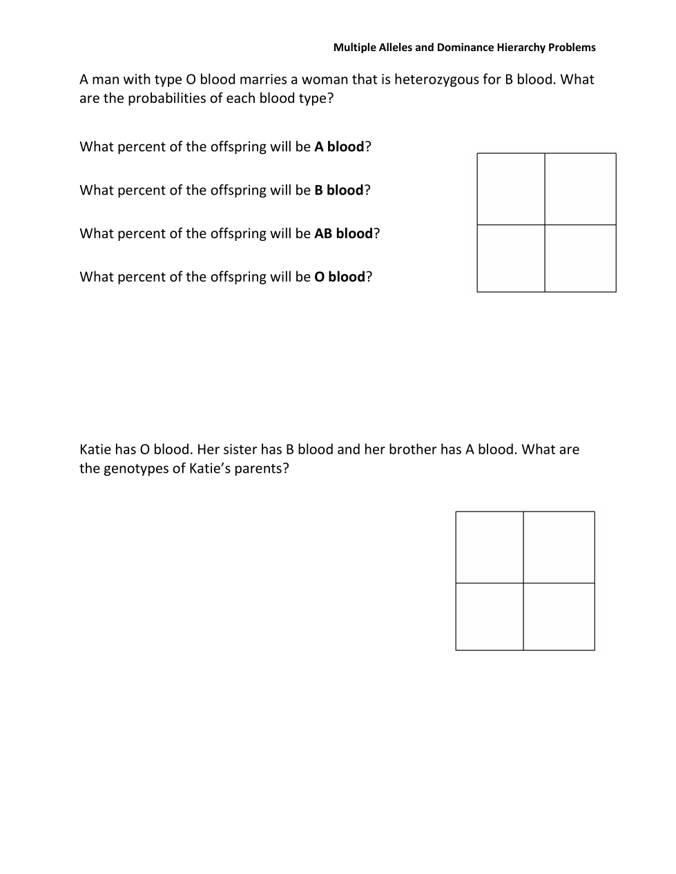 Draw the Punnett square for a man with O blood and a woman who is heterozygous for B blood.