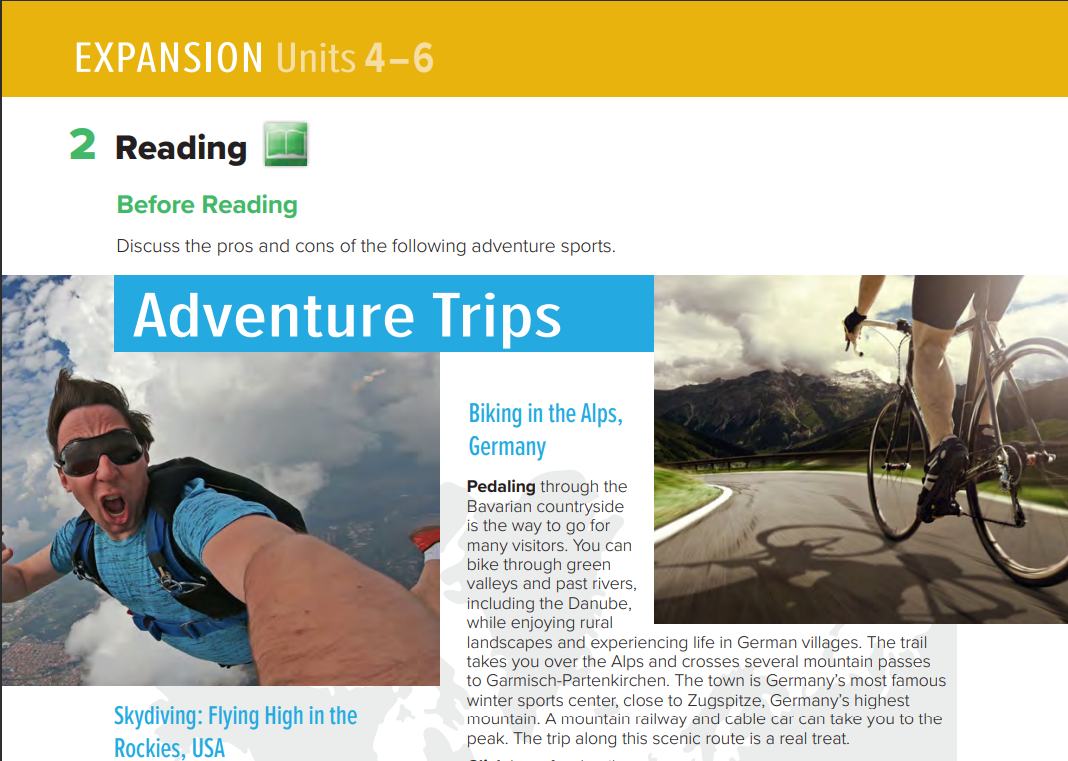 Question 2\ What are the three adventure sports mentioned in the subtitles in page 70?