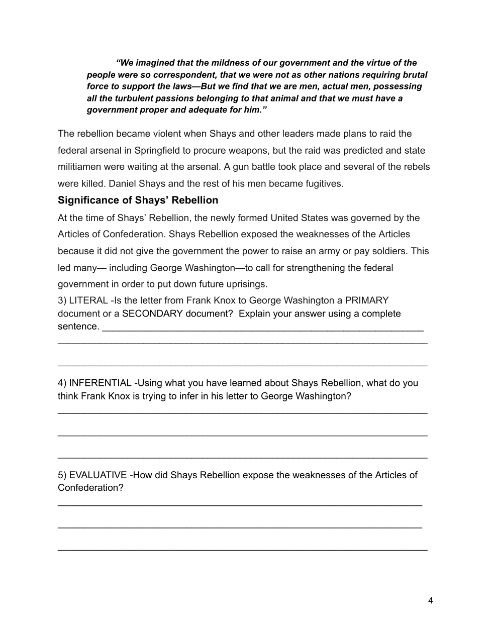 Using what you have learned about Shays Rebellion, what do you think Frank Knox is trying to infer in his letter to George Washington?