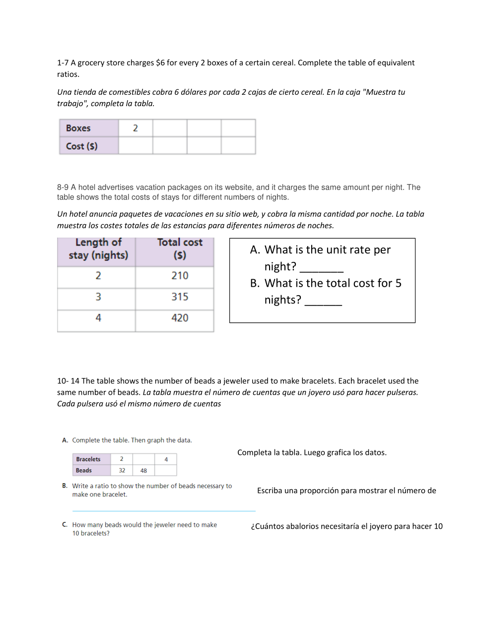 Write a ratio to show the number of beads necessary to make one bracelet.