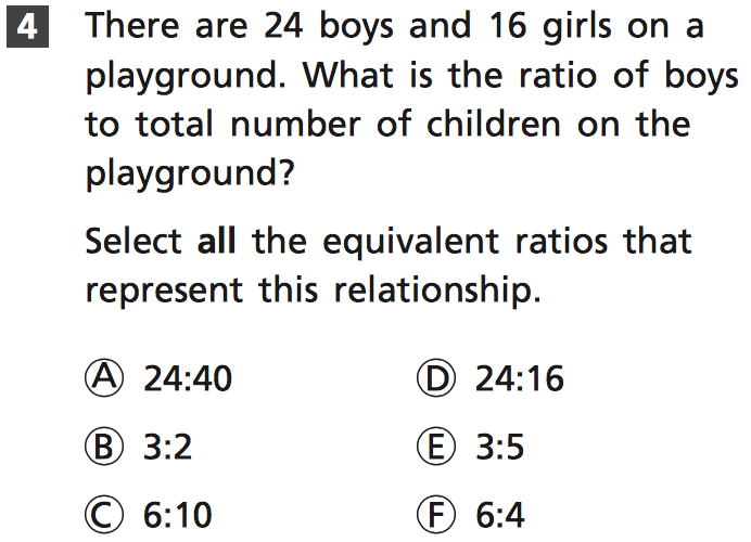 Hay 24 niños y 16 niñas en un patio de recreo. ¿Cuál es la proporción de niños con respecto al número total de niños en el patio de recreo?