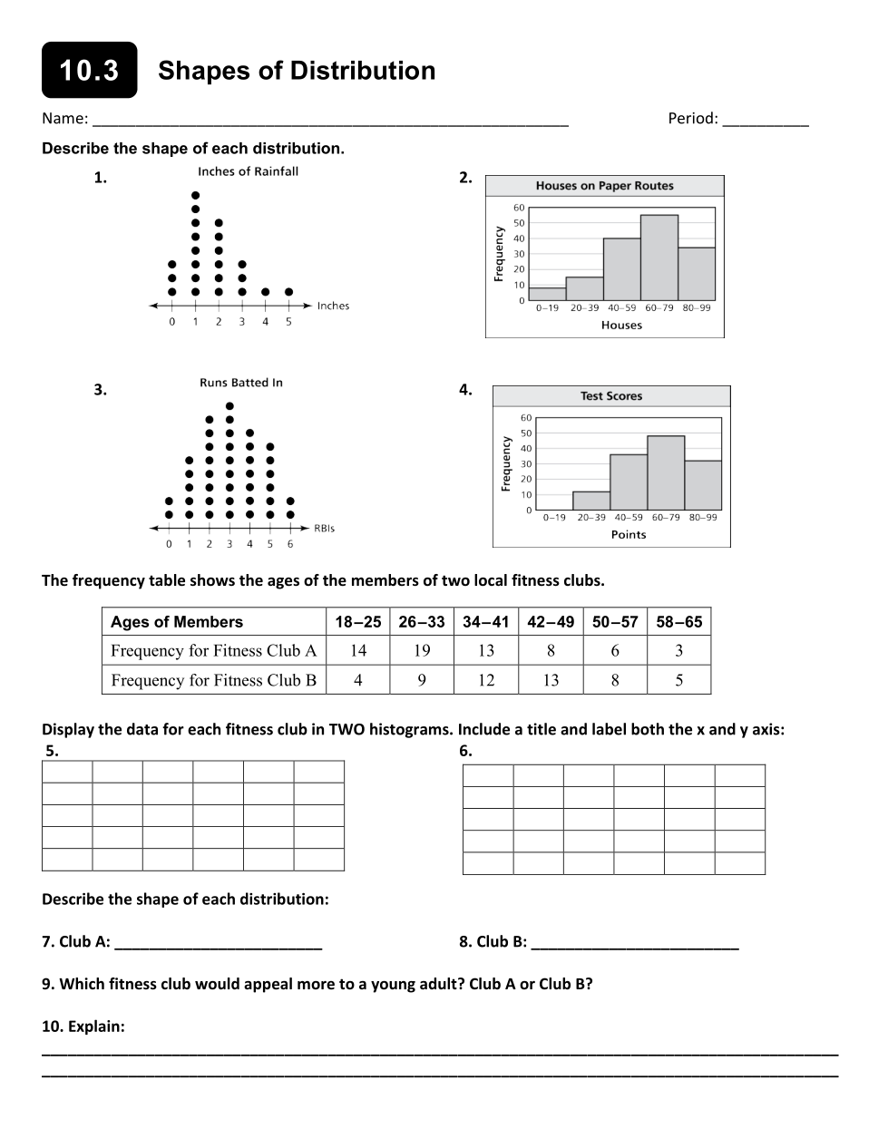 Describe the shape of the distribution of the Fitness Club A histogram.