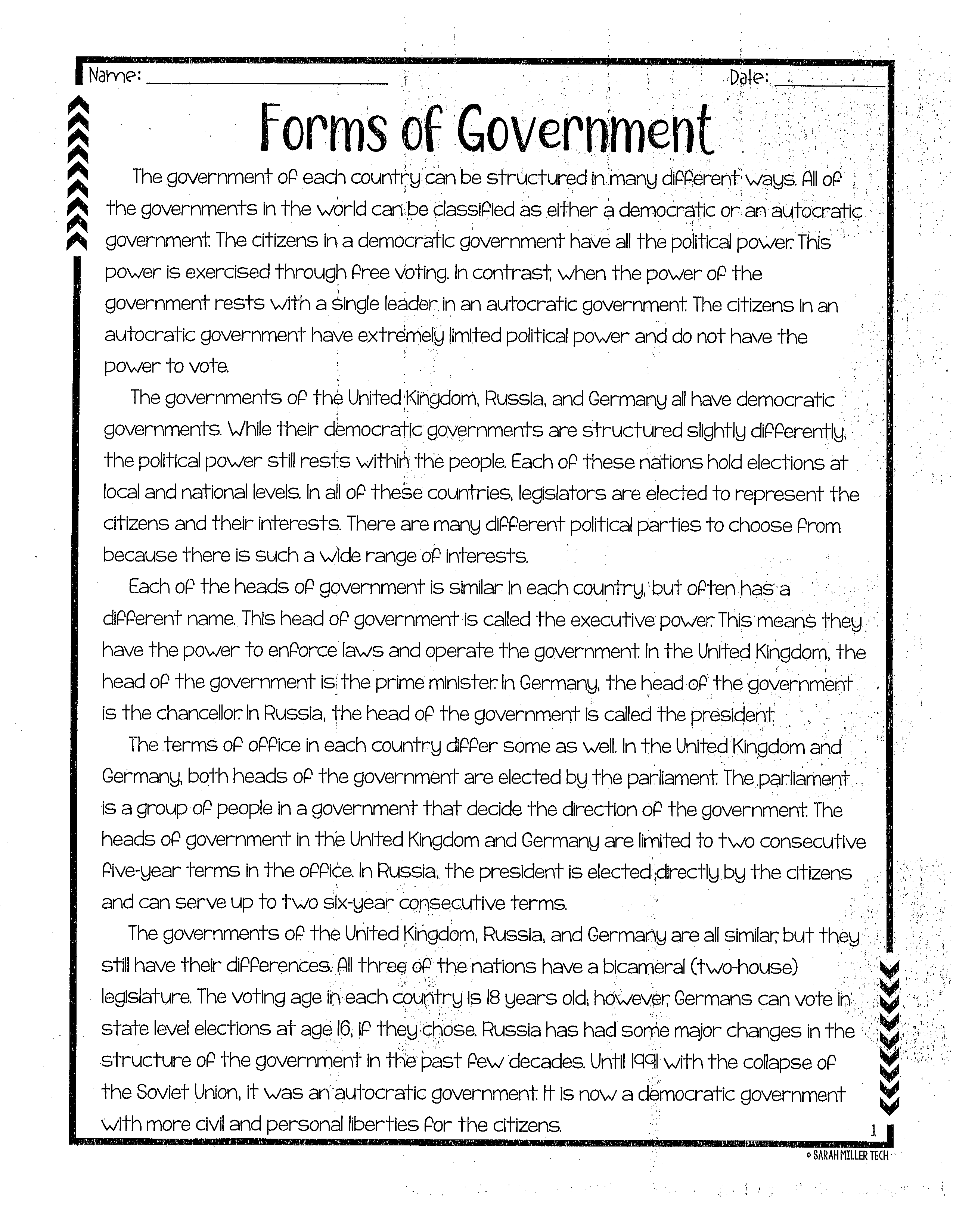 Forms of Government Cold Read