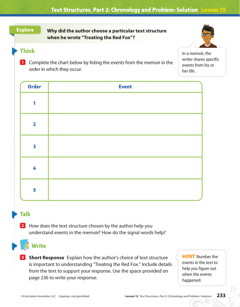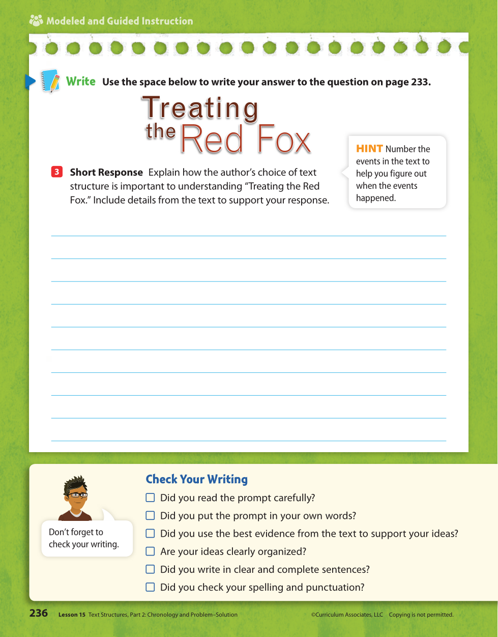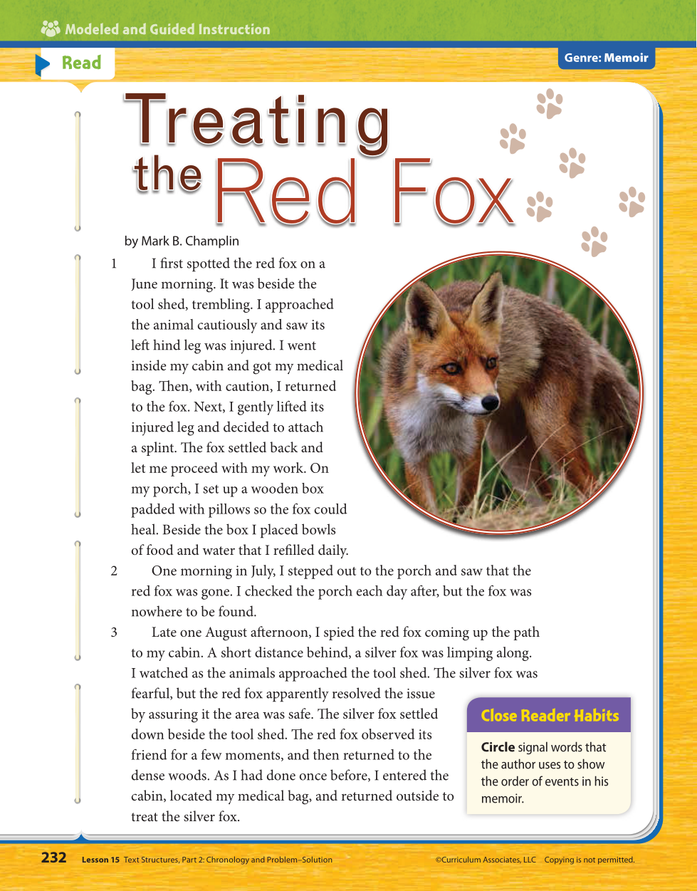 Explain why the author chose the to organize the story in chronological order and why using the chronological order is important to the how we understand the story "Treating the Red Fox."