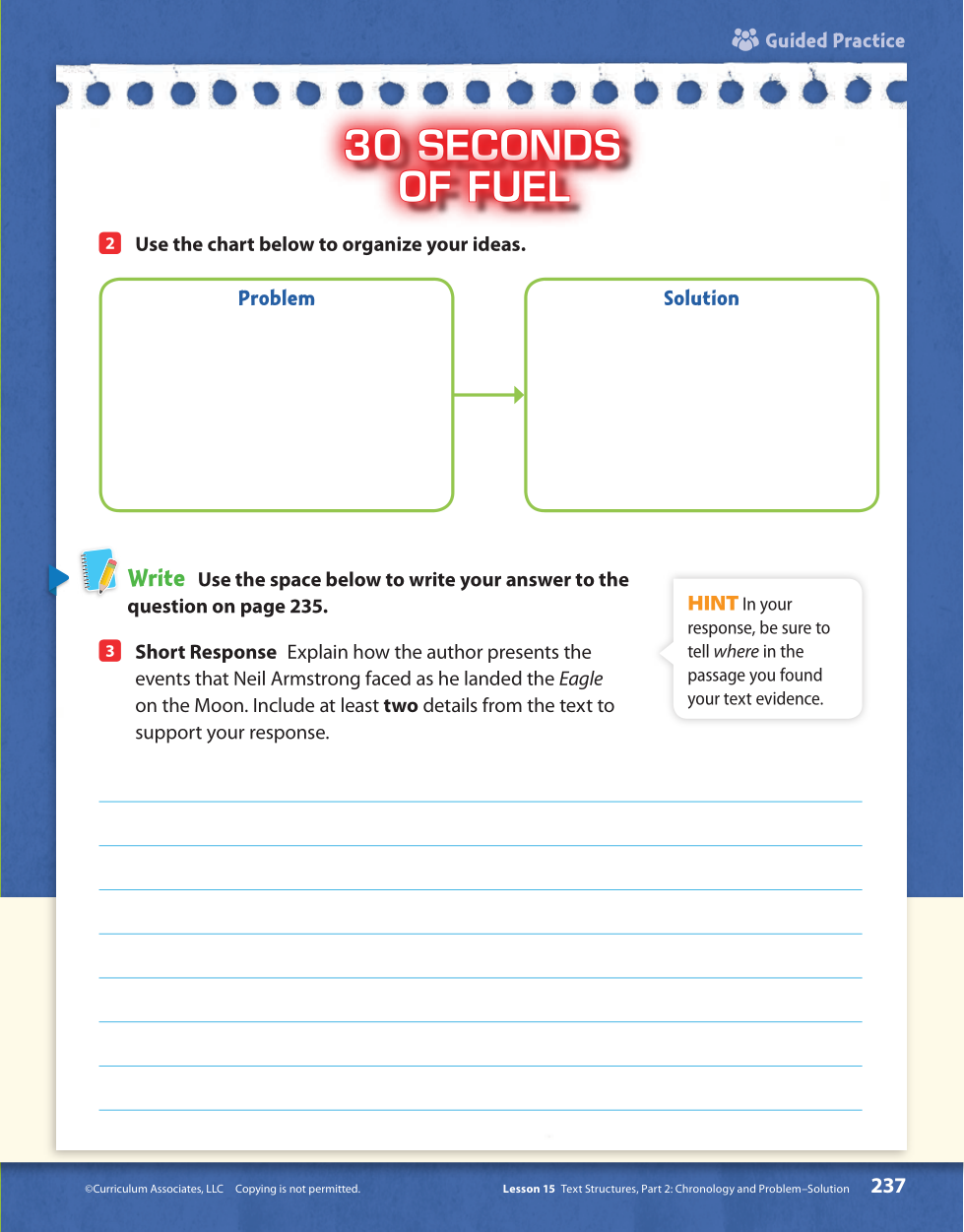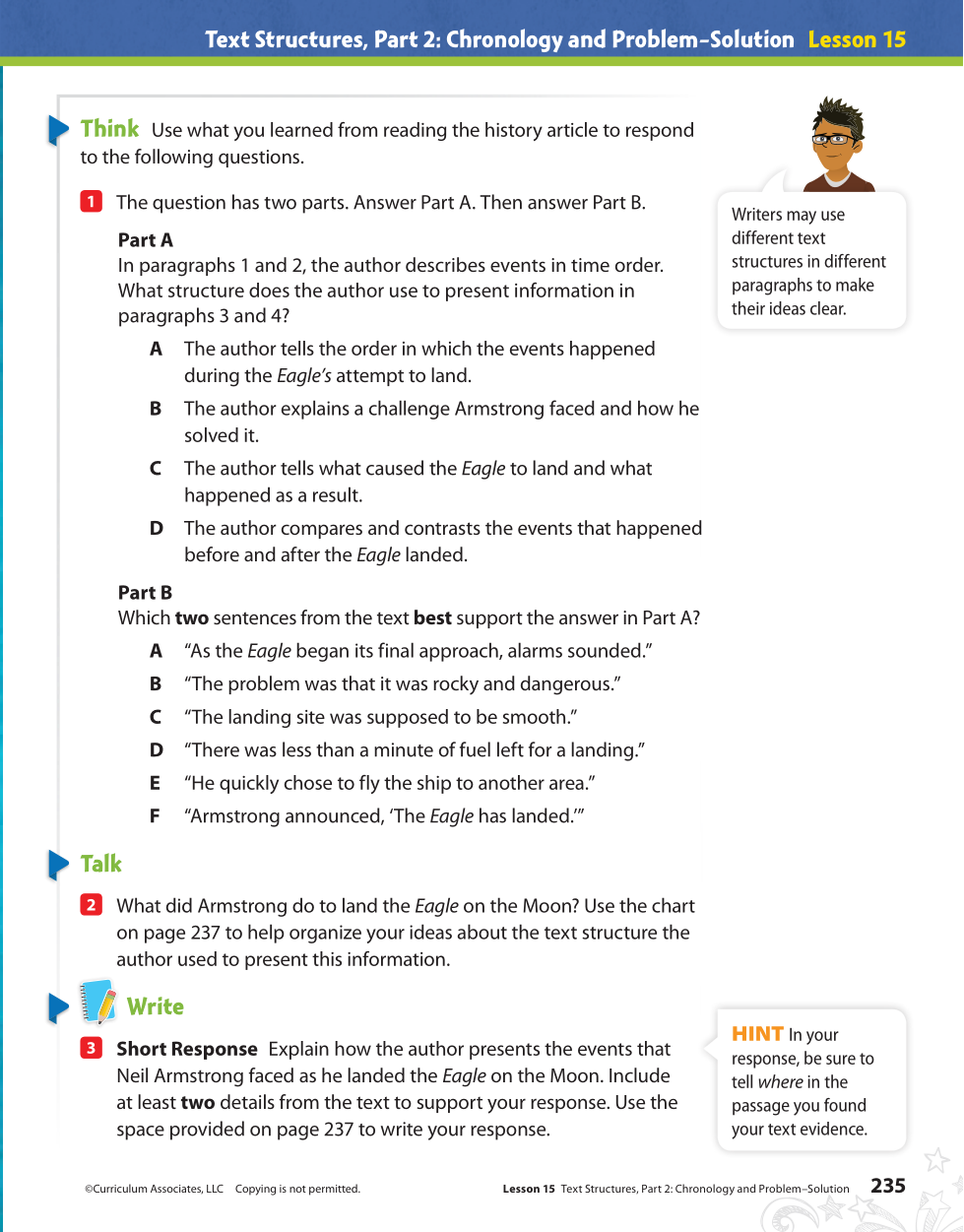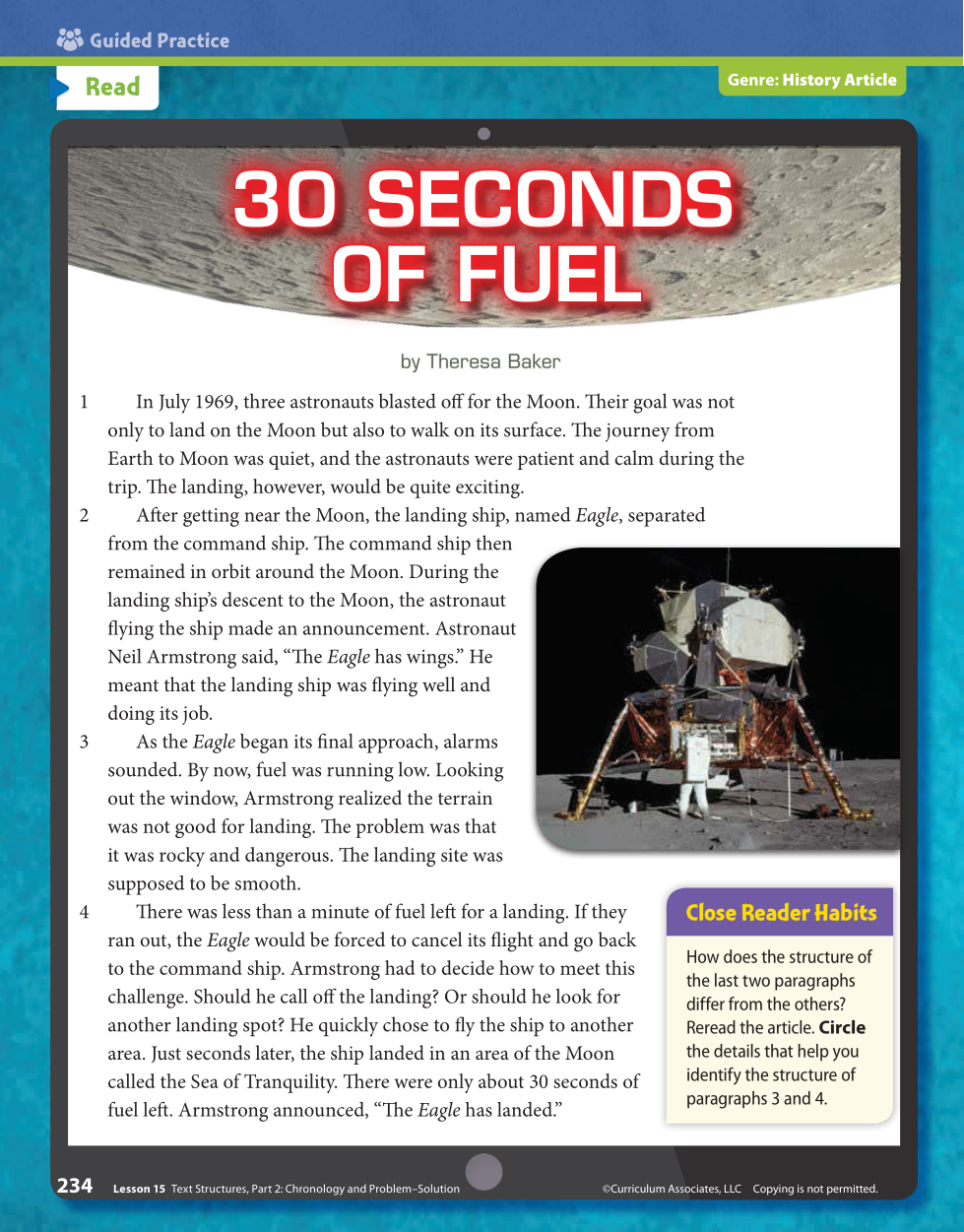 Explain the challenges Neil Armstrong faced and how he solved any problems. Be specific. Use text evidence to support your answer. Write in complete sentences.
