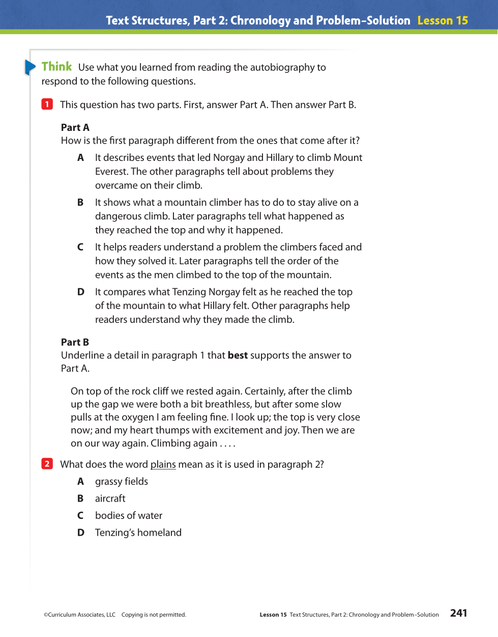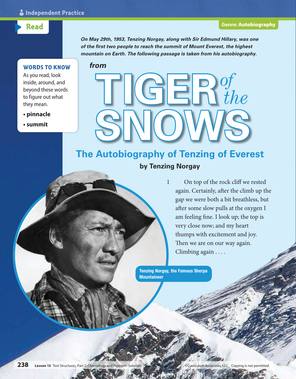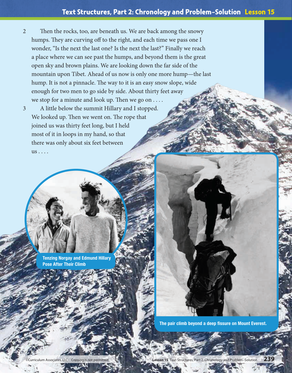- As Tenzing and Hillary climb above the rocks, Tenzing wonders if the next snowy hump will be the last one.