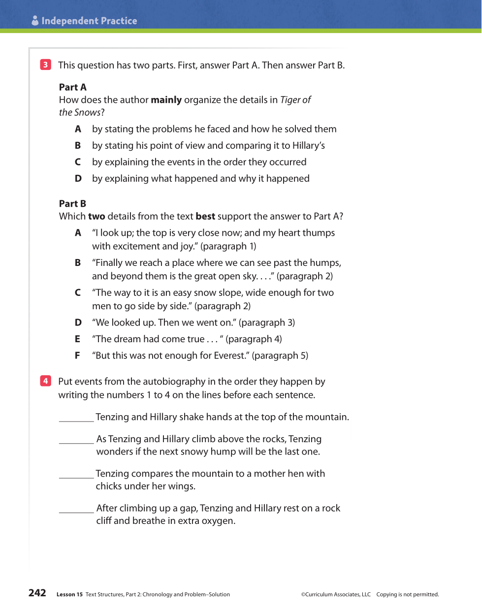 OPINION: Why do you think the author organized the story in chronological order? Explain your answer. Write in complete sentences.