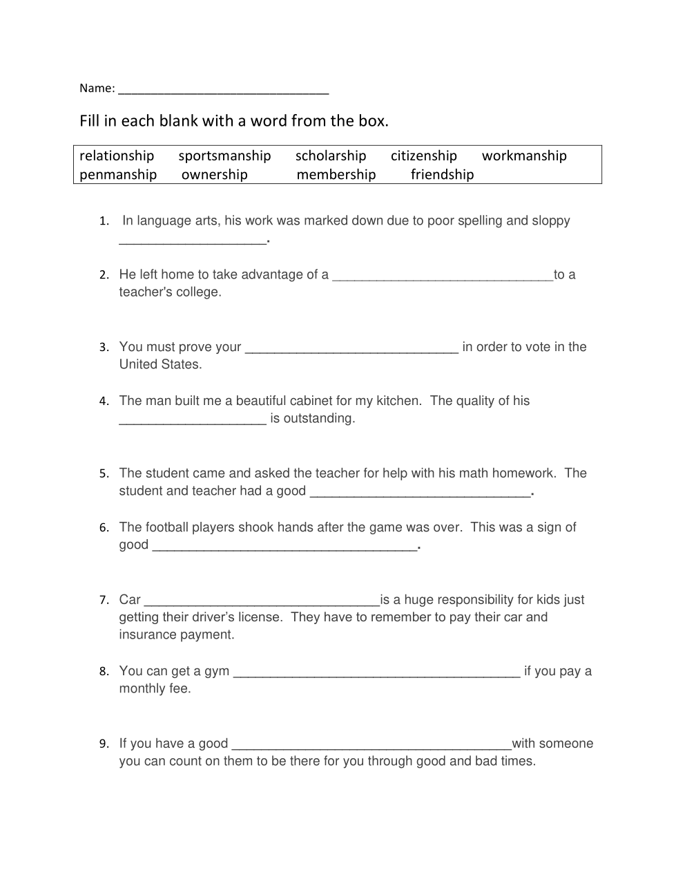 Select 4 words from the box below and write a short paragraph. The paragraph must make sense.