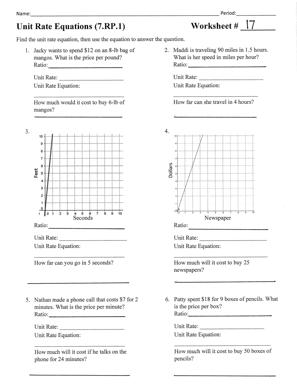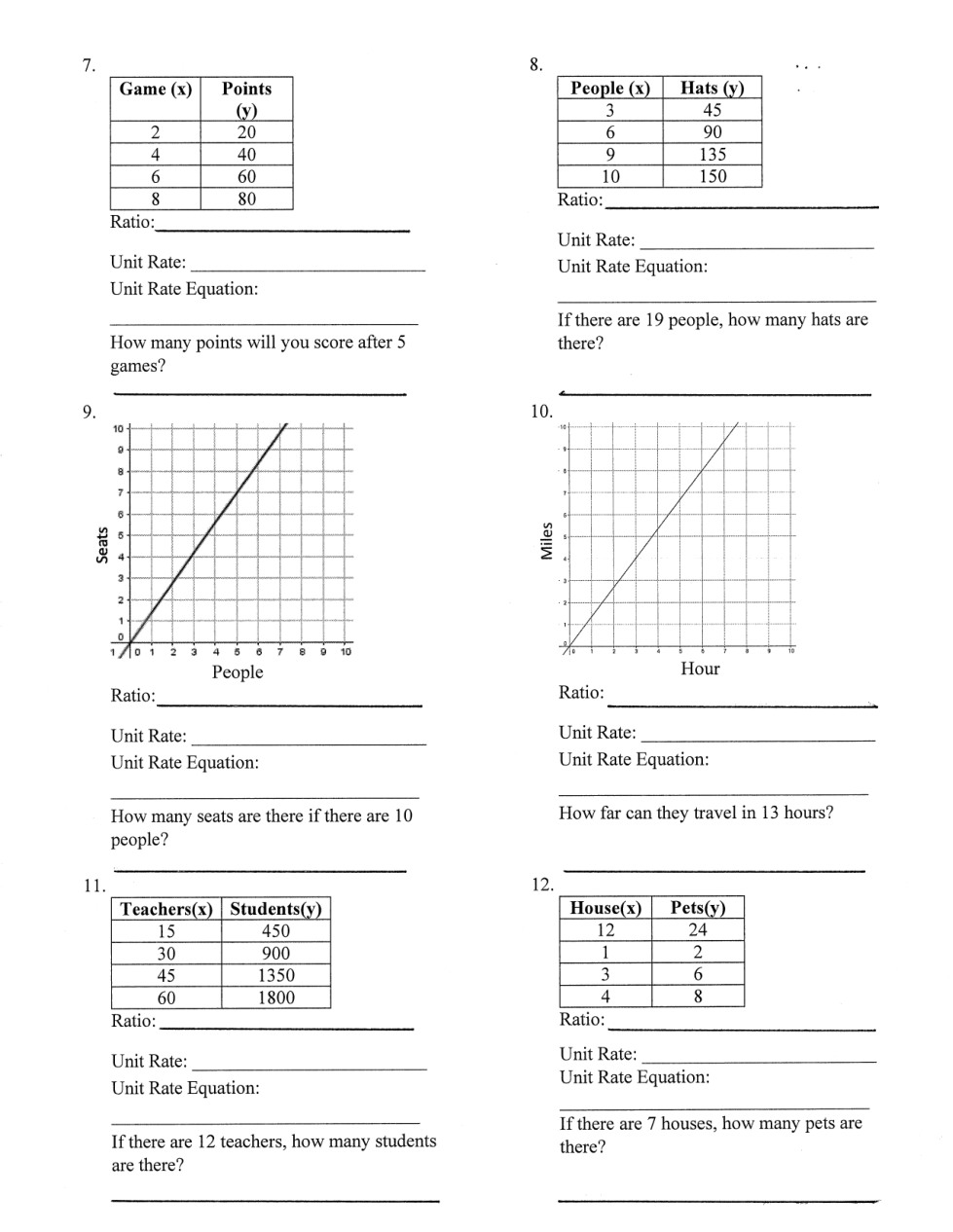 Use the Unit Rate to write the Unit Rate Equation (y=kx where k is the Unit Rate)