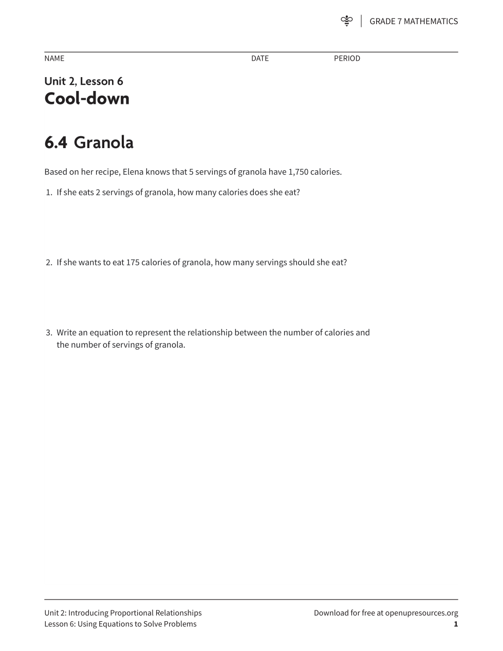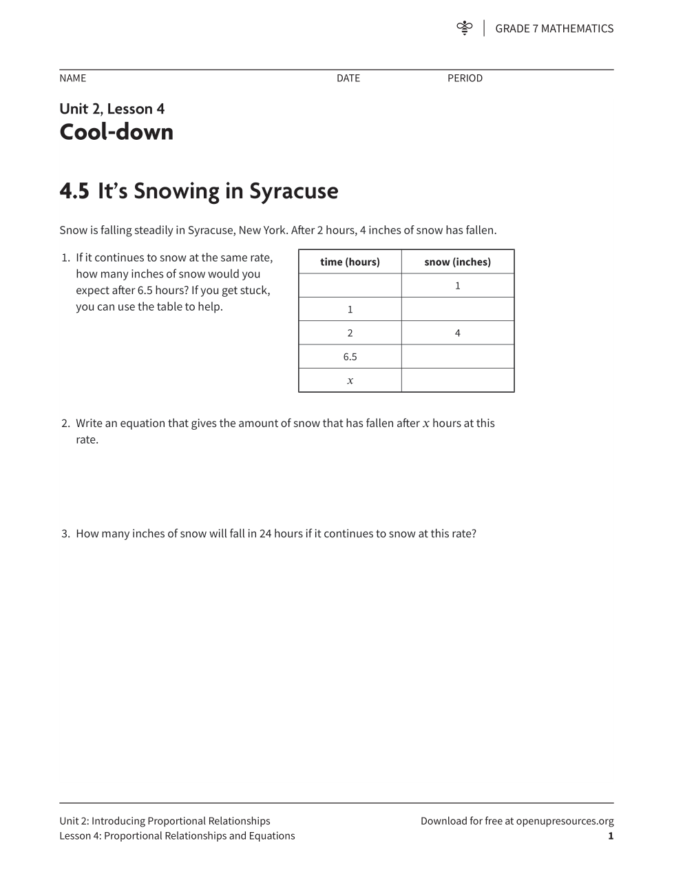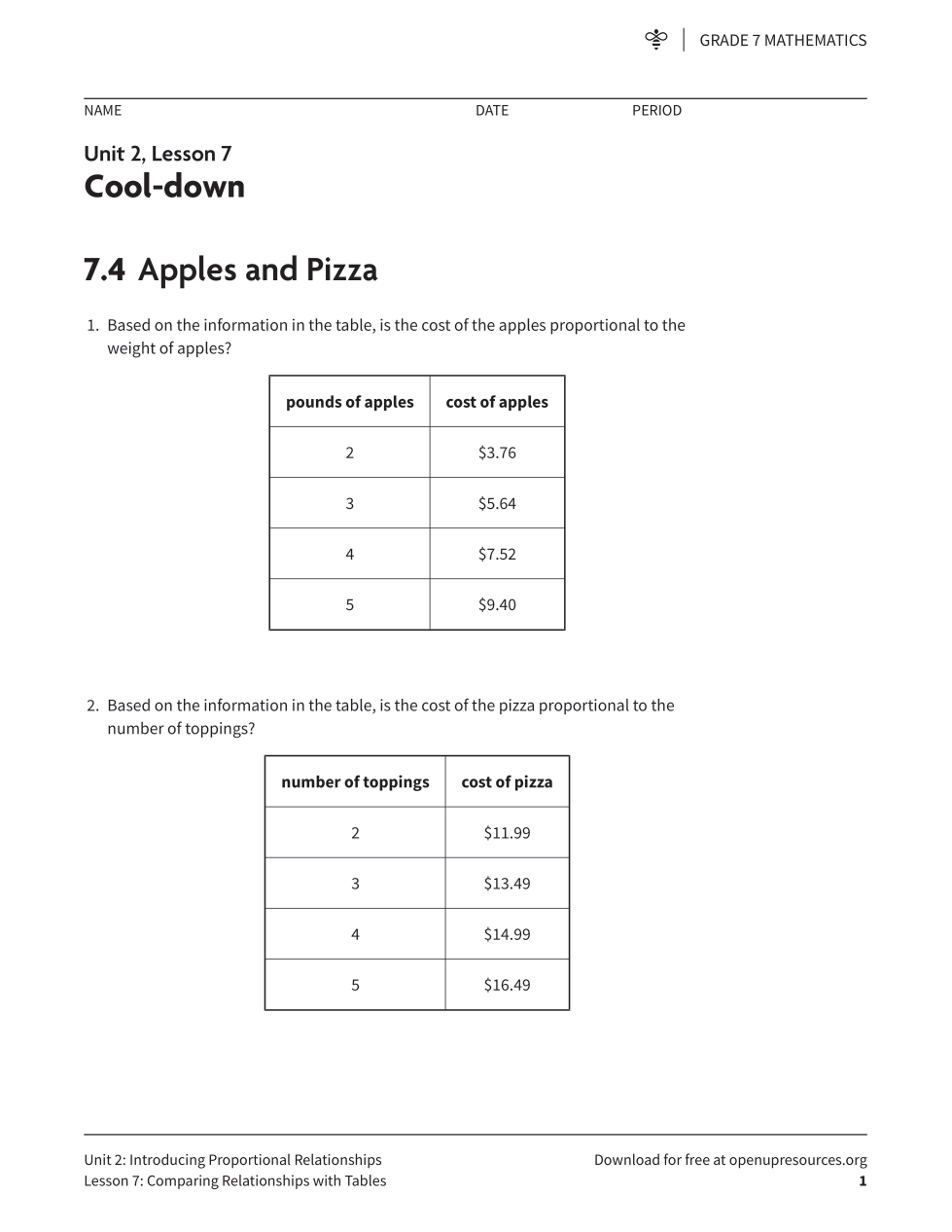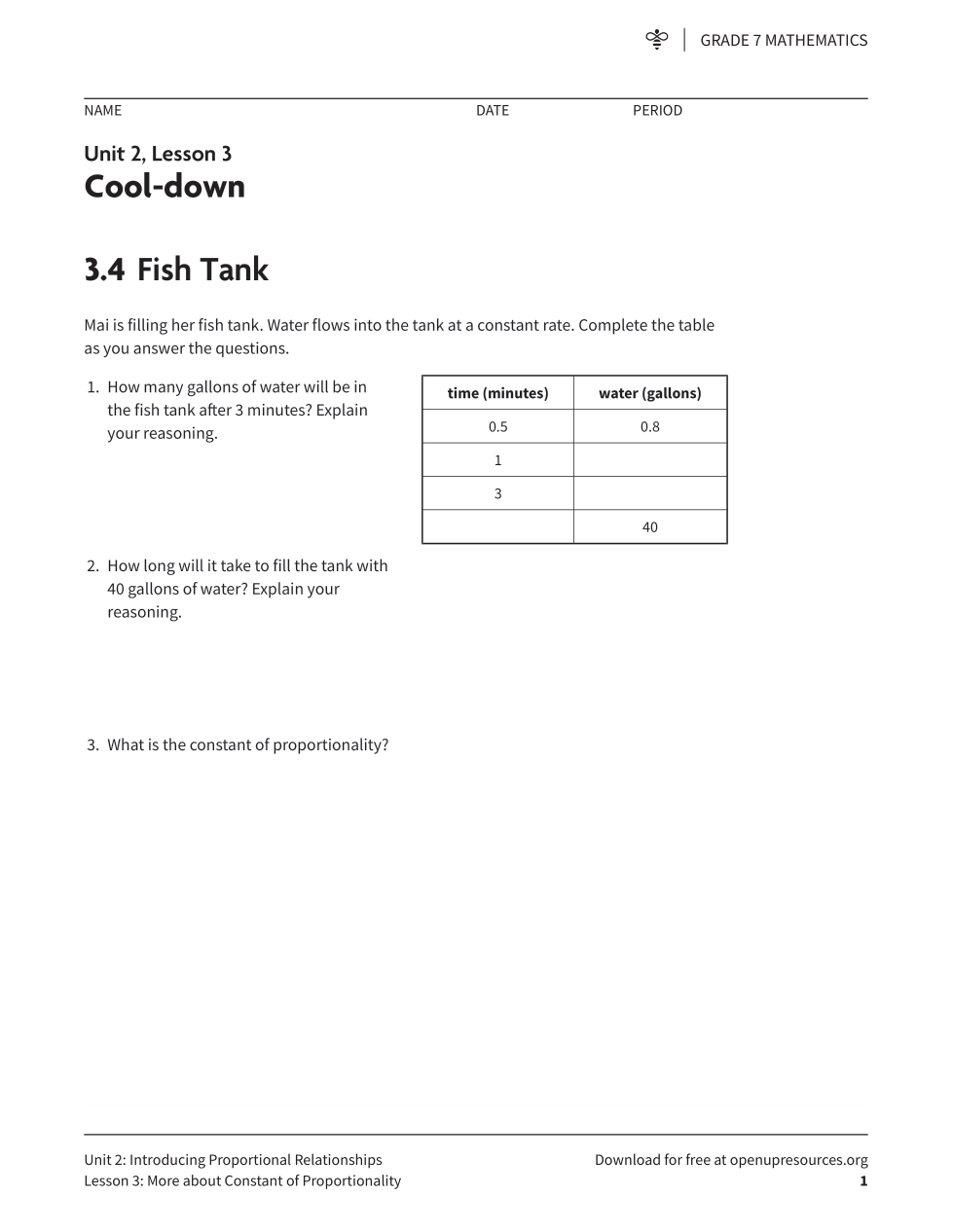 Grade 7 Unit 2 Review (IM) - Proportional Relatioships