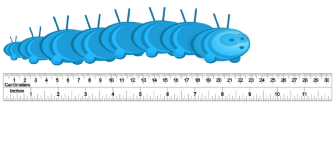 Look at the picture shown below. About how long is the caterpillar in inches and in centimeters?
