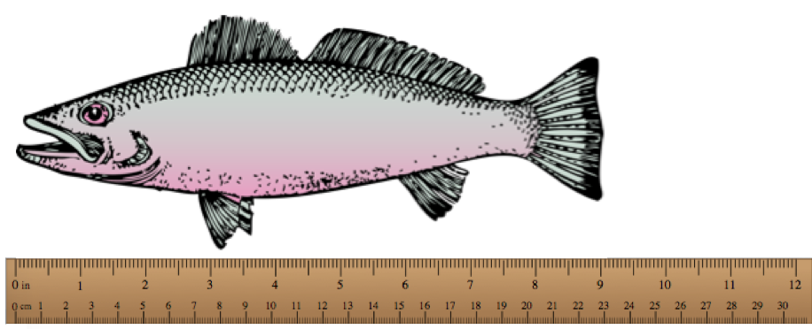 Fred caught a fish. He wanted to see how long his fish was. Use the ruler below to measure his fish. (Measure in inches)