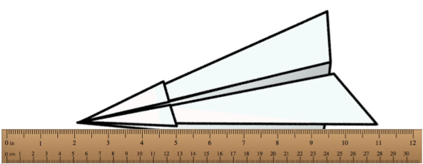 Tiffany folded a paper airplane. She measured the plane from the tip of its nose to the tip of a wing.
