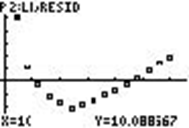 A study of the fuel economy for various automobiles plotted the fuel consumption (in liters of gasoline used per 100 kilometers traveled) vs. speed (in kilometers per hour). A least squares line was fit to the data. Here is the residual plot from this least squares fit. What does the pattern of the residuals tell you about the linear model?