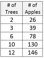 What is the constant rate of apples/tree ? (hint.. how many apples per 1 tree?)