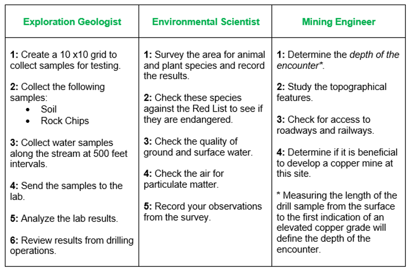 - Welcome to the “Dig a Little Deeper,” a virtual lab that takes you inside the world of copper mining, as you join a team of scientists who must choose which of three potential sites to build a copper mine. In order to make this decision, you must conduct the same tests that an exploration geologist, environmental scientist, and mining engineer do during the exploration phase of mining. Once your tests are complete, you will make a recommendation to a mining company about which site has the greatest number of benefits and the fewest trade-offs.