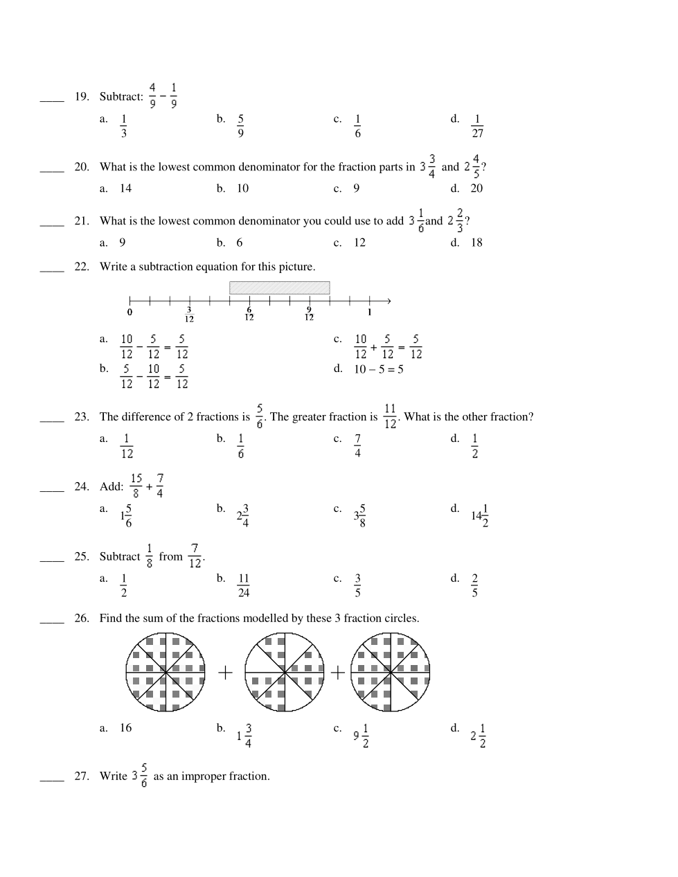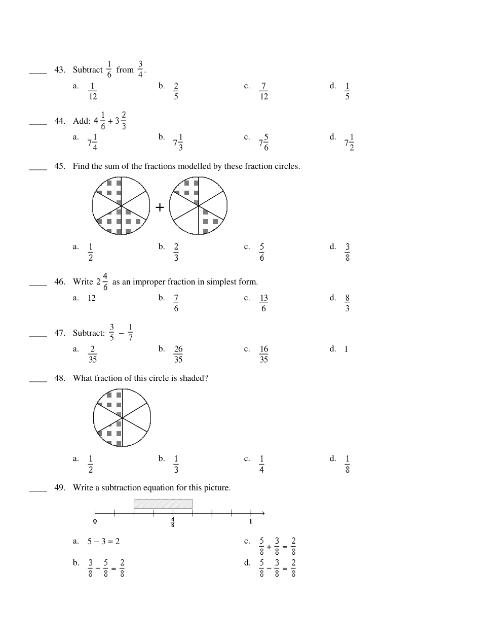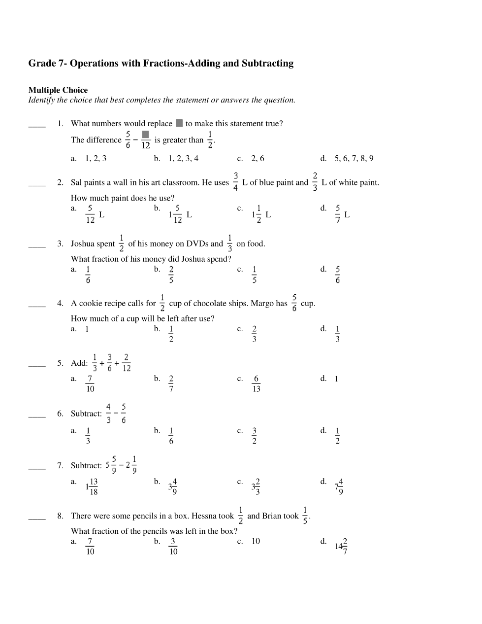 Gr. 7- Adding and Subtracting Fractions and Mixed Numbers Review