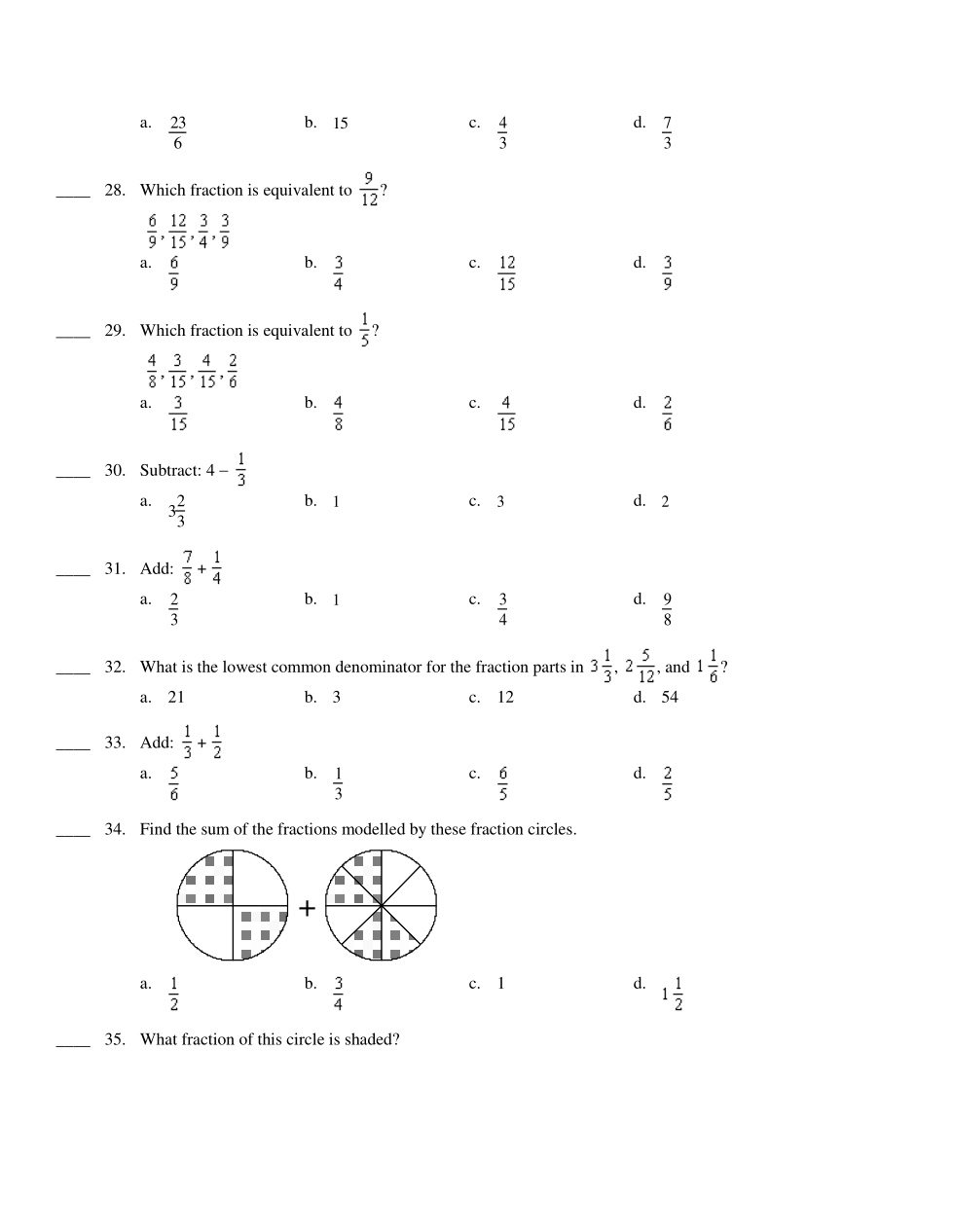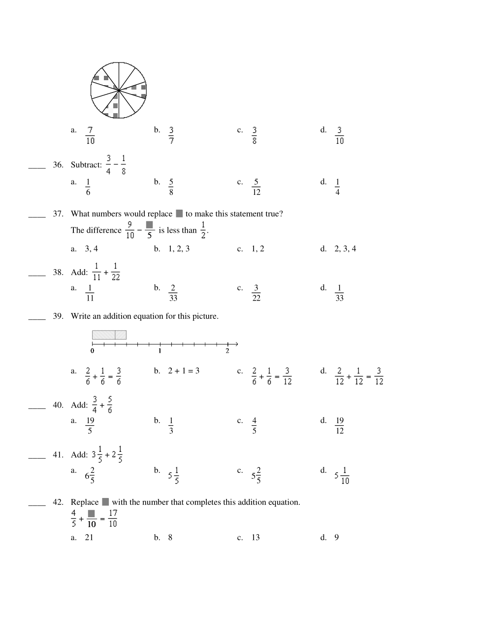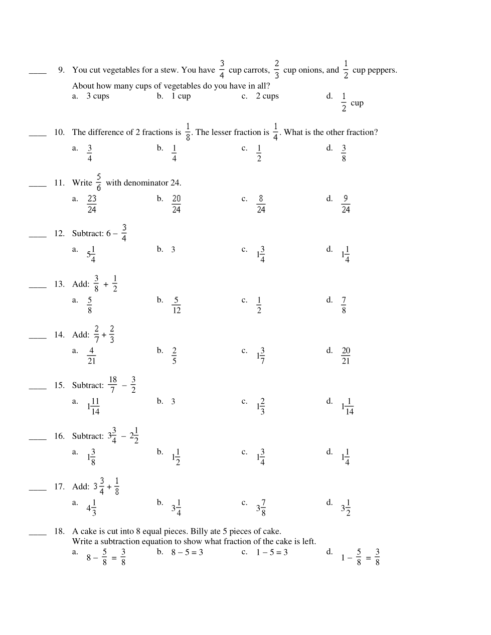 Gr. 7- Adding and Subtracting Fractions and Mixed Numbers Review