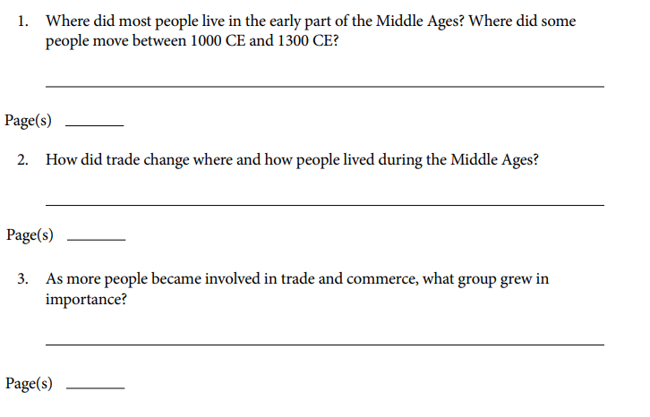 As you and your partner read Chapter 4, “Merchants, Markets, and Mud: Towns in the Middle Ages,” answer the following questions in complete sentences.