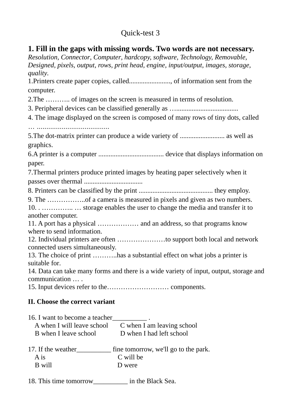 1.Printers create paper copies, called........................, of information sent from the computer.