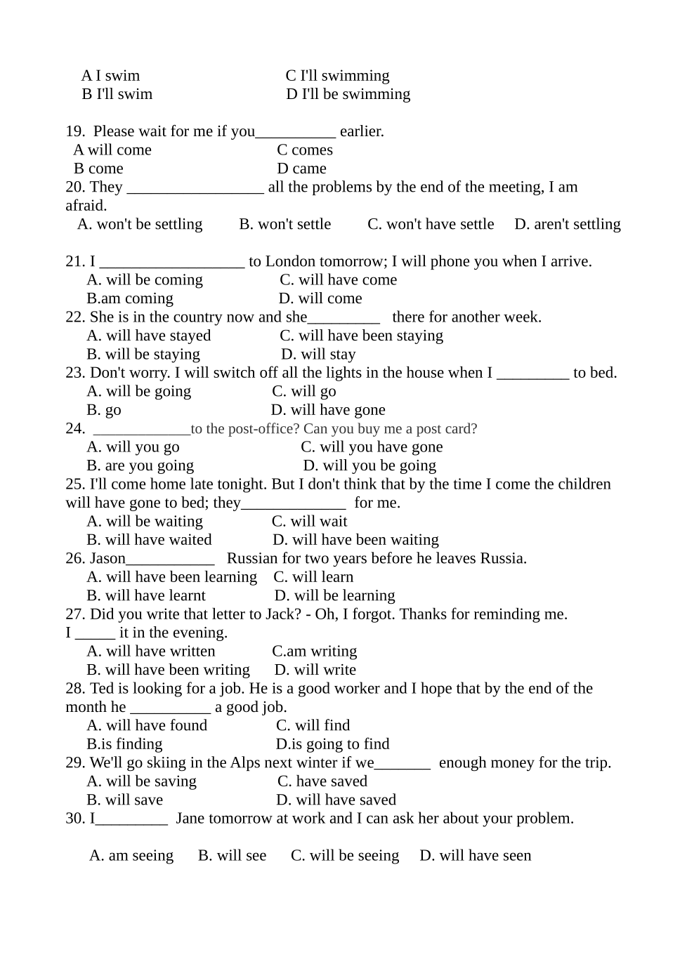 I'll come home late tonight. But I don't think that by the time I come the children will have gone to bed; they_____________ for me.