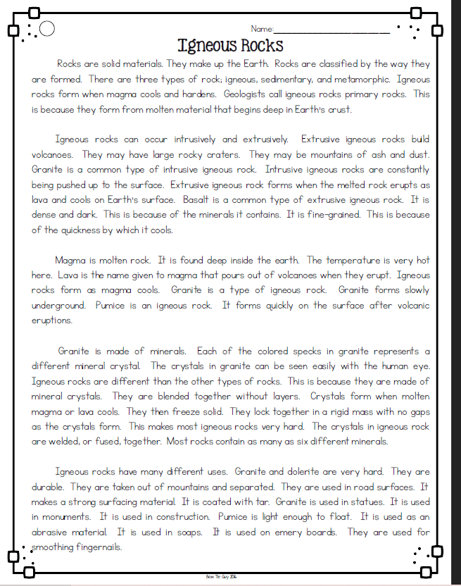 Igneous rocks reading selection