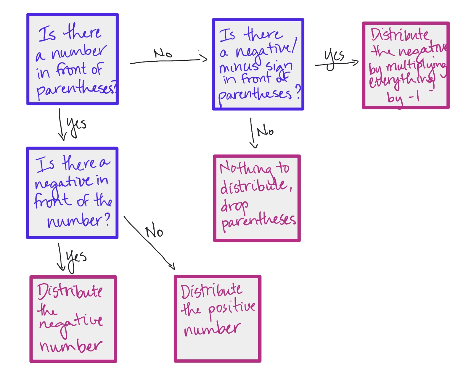 Distribute, then combine like terms to simplify. You should use pencil and paper to complete these problems.