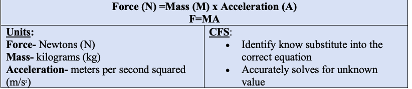 Teacher Example: Group one found that their jar lid traveled at 10ms/2 . If their jar lid had a mass of 1kg what was the force applied to the jar lid?