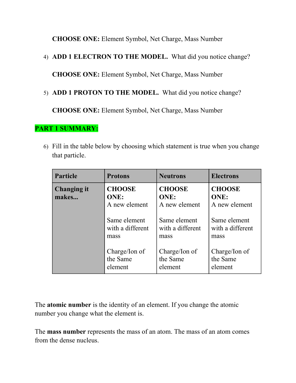 Add/Remove Electrons | arrow_right_alt | Forms a charge/ion of the same element |