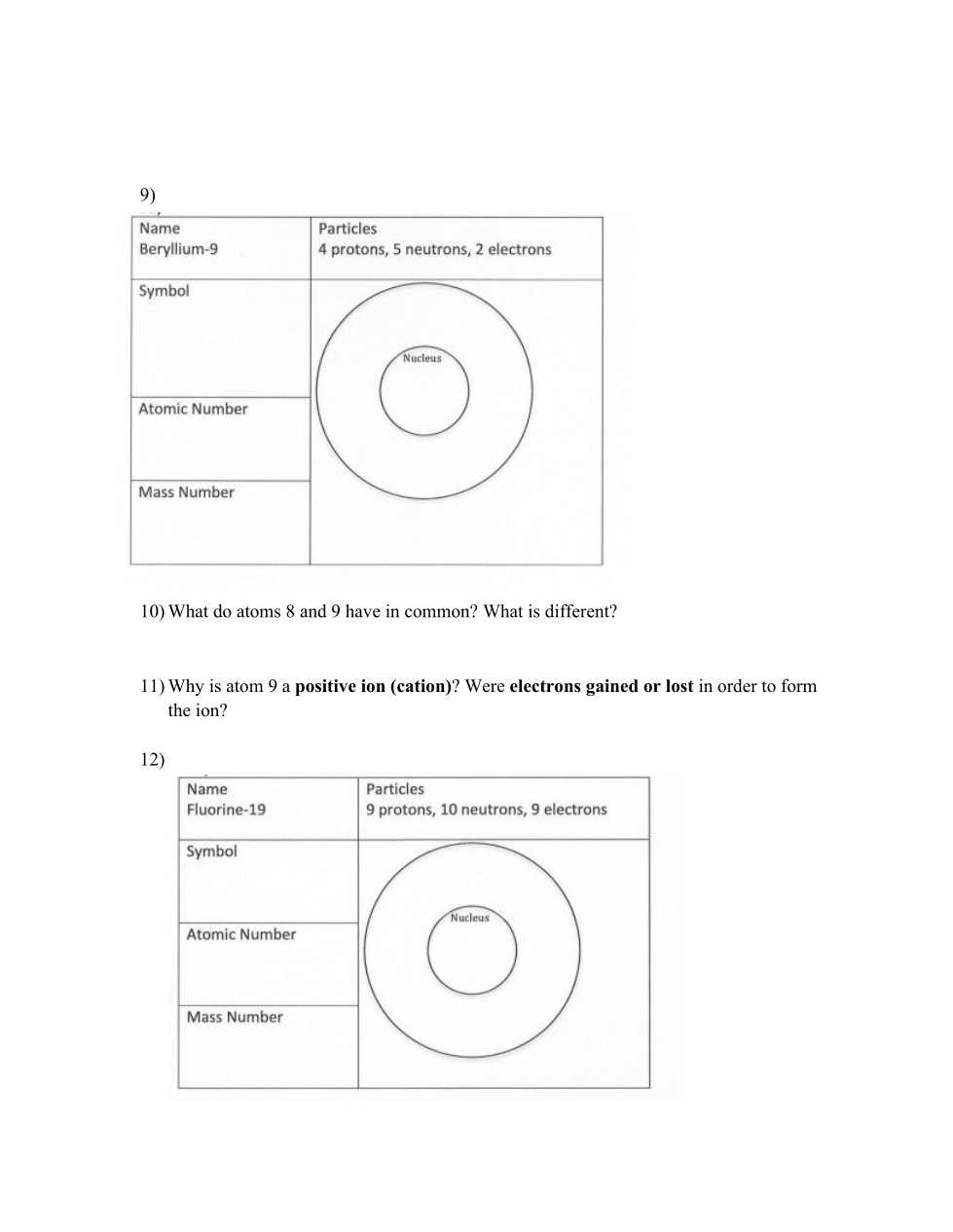 Why is atom 9 a positive cation?Were electrons gained or lost in order to form the ion?