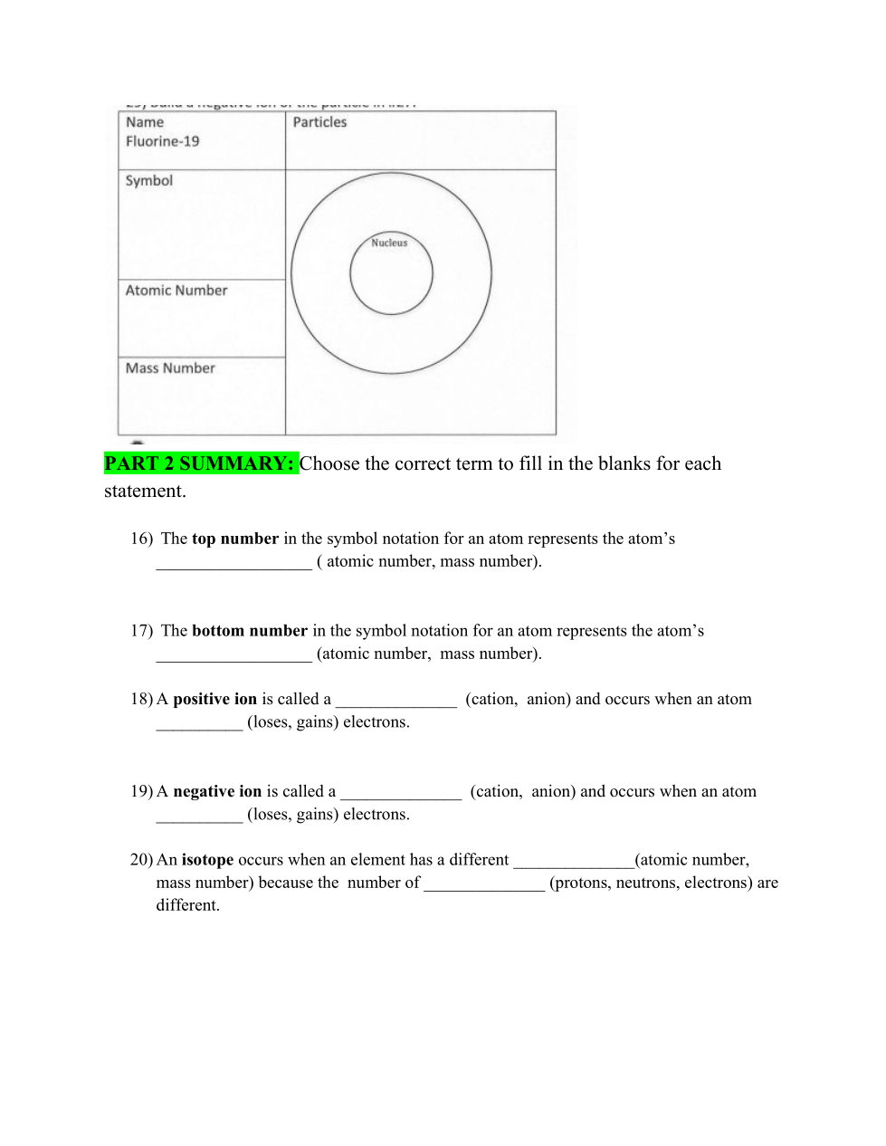 A NEGATIVE ION is called a ____________________ (cation, ion) and occurs when an atom ______________ (loses, gains) electrons. Choose the two correct terms to fill in blanks