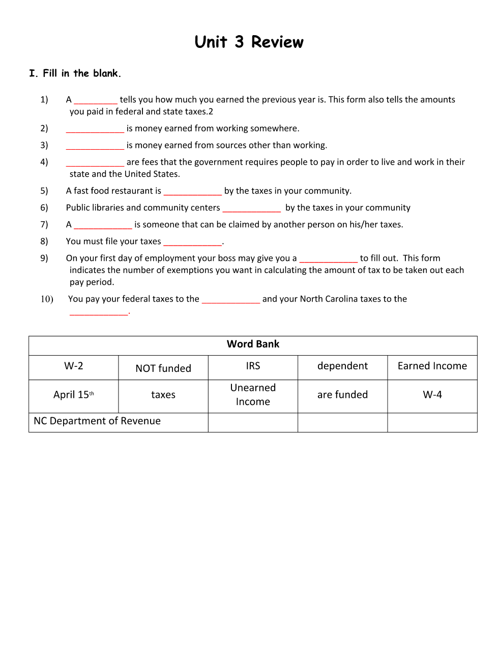 Unit 3 Review