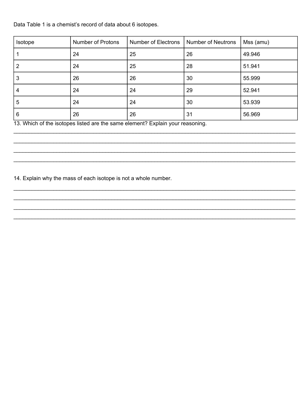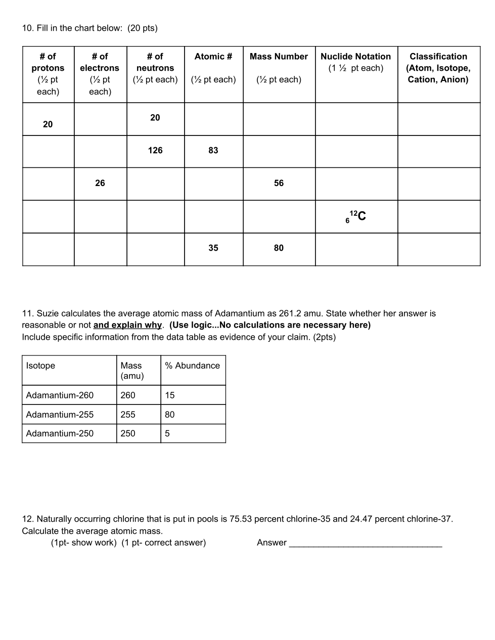 Atoms, Ions, and Isotopes Assessment