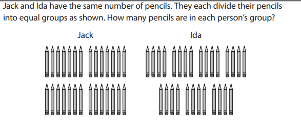 Which problem can be solved using the division equation 12 ➗ 4 = ?