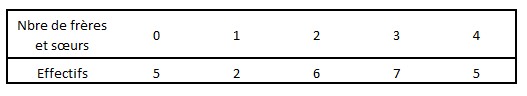 On a demandé aux élèves d'une classe combien ils ont de frères et soeurs. Le tableau vous donne le comptage des réponses. La moyenne est de 2.2. Quelle est la variance?