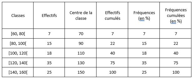 On a mesuré 250 sapins d'une parcelle et on a obtenu les résultats ci-dessous en cm.