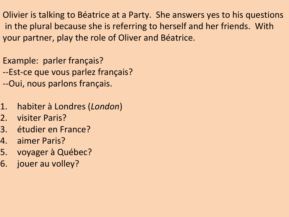 1. Est-ce que vous habitez à Londres?