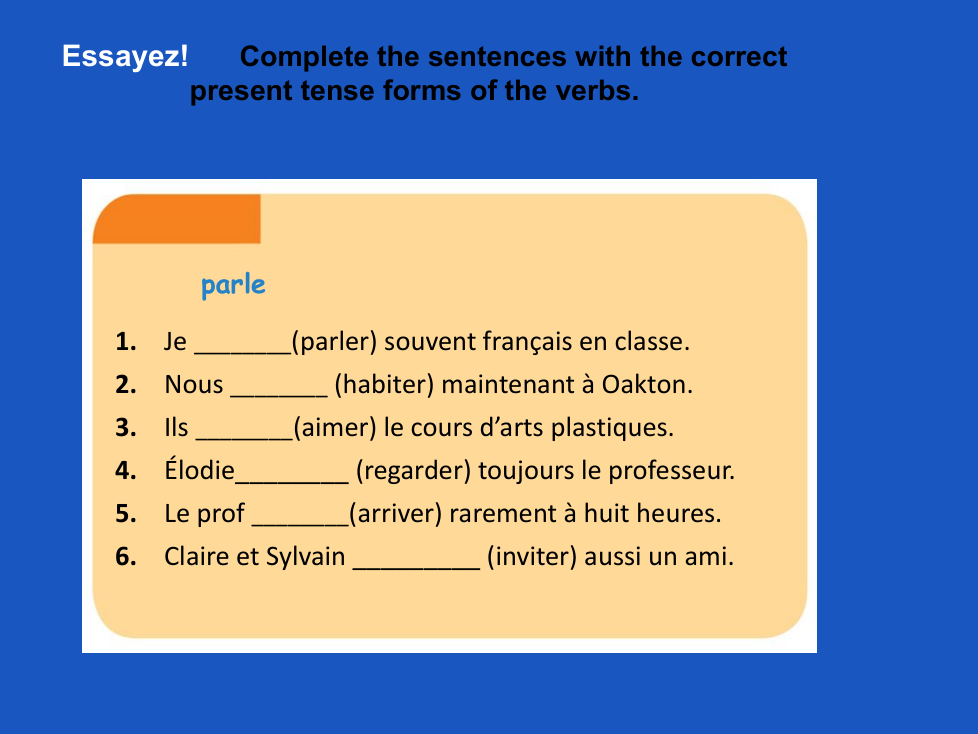 3. Mon ami(e) (il/elle/on/iel) 3. habiter
