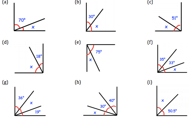 A right angle is _____ degrees. When two angles add up to a right angle, they are known as complementary angles.