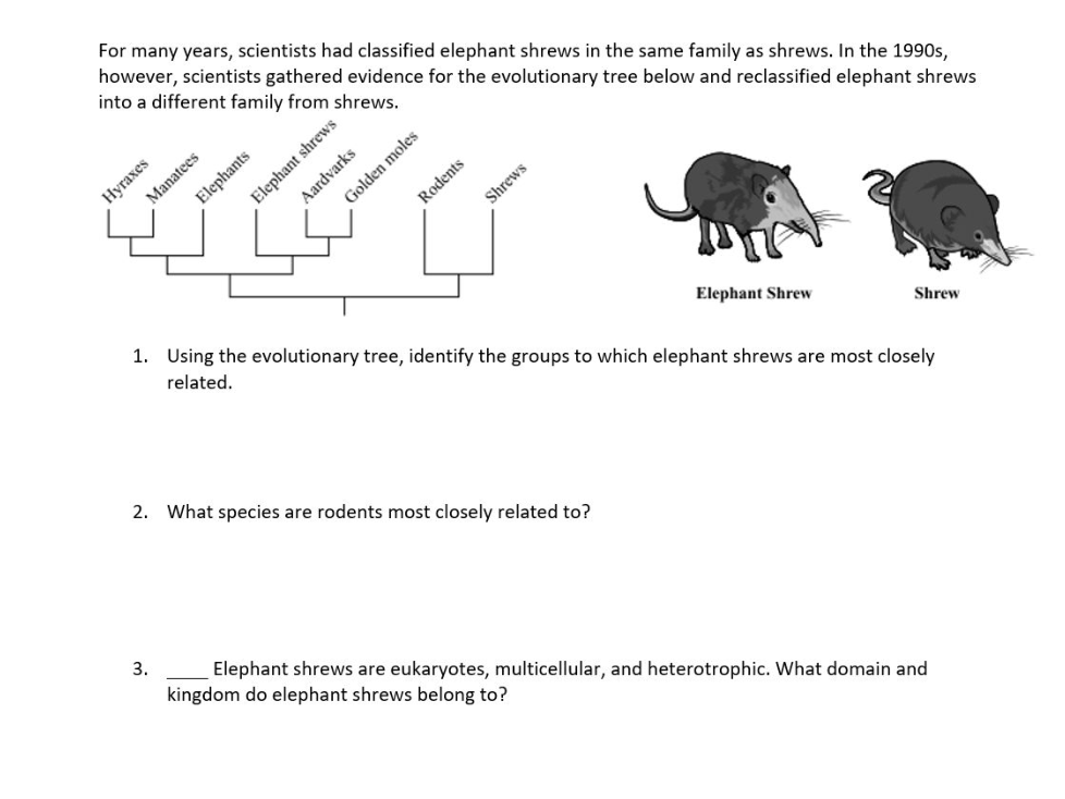 Elephant shrews are eukaryotes, multicellular, and heterotrophic. What domain and kingdom do elephant shrews belong to?