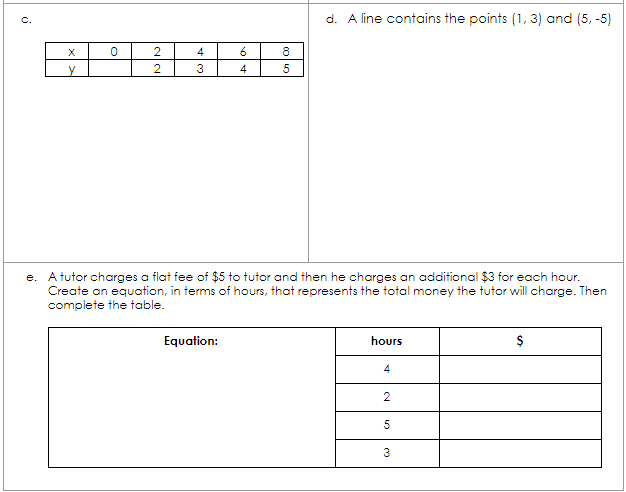 A.CED.2 Create equations and graph (linear)