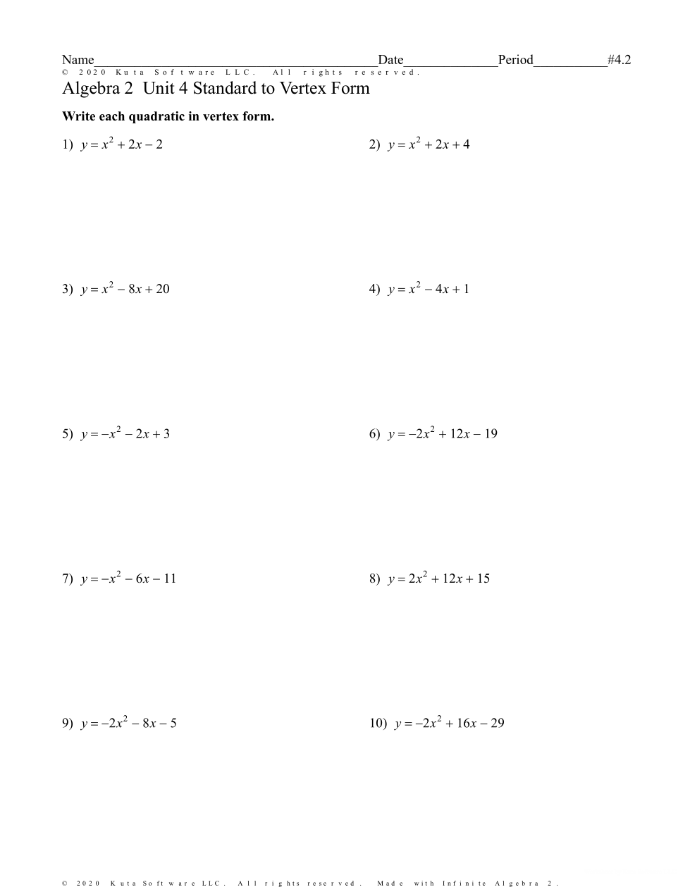 4.2 Standard Form to Vertex Form