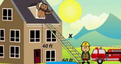 The fire department needs to rescue a man from a house. There is a large, unstable puddle below the house. The ladder needs to be placed 60 feet from the house and reach up to a 40 foot window. How long must the ladder be? (see diagram below).