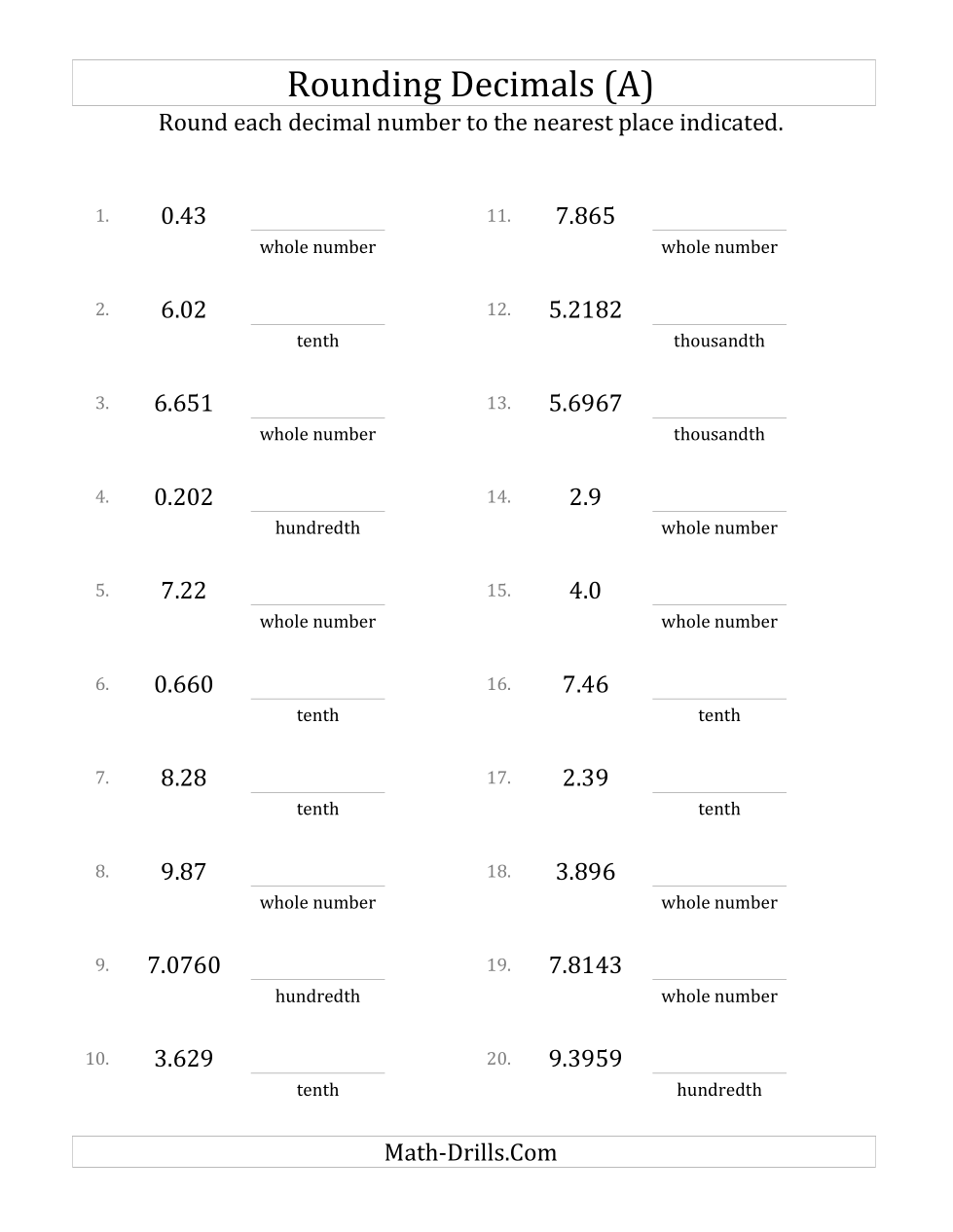 Rounding Decimals Math_Drills.com