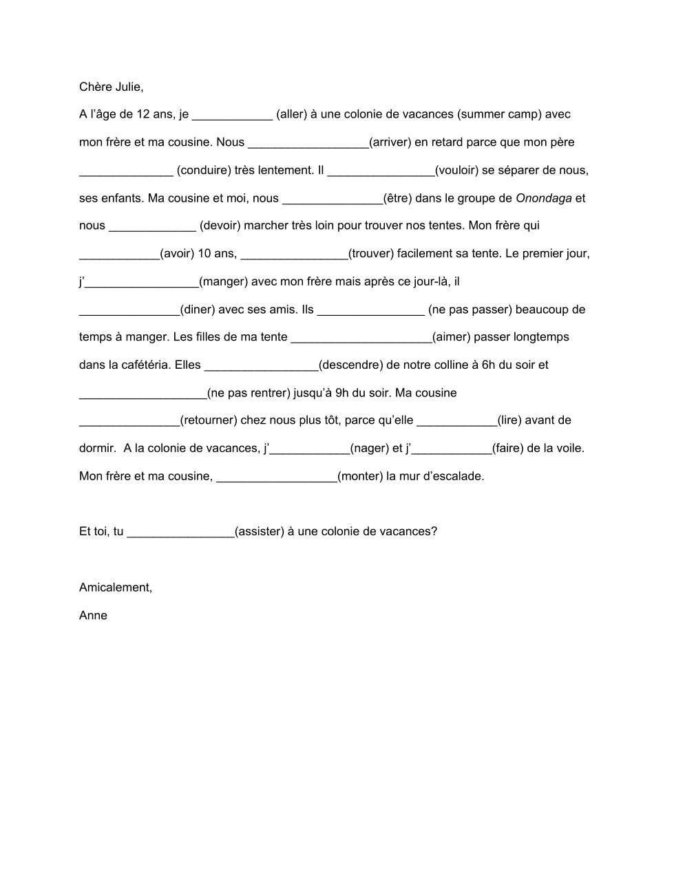 THIS IS A SUMMATIVE ASSESSMENT. Only do this when you are ready for it to count as a grade. You may not use any other resources such as your notes, Word Reference, or your friends and family.